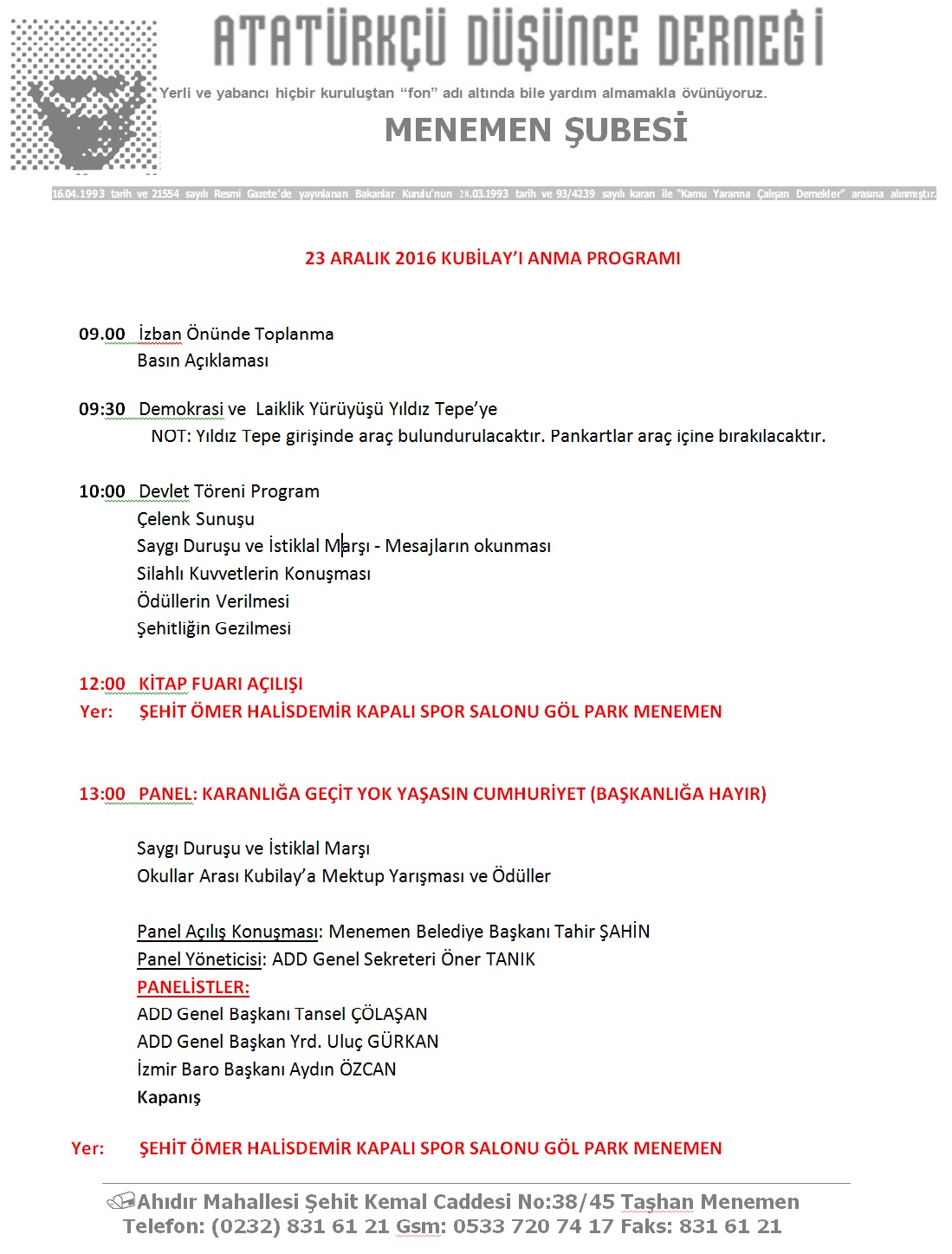 DEVRİM ŞEHİDİ KUBİLAYI ANIYORUZ- 23 Aralık 2016 / 2016-12-21
